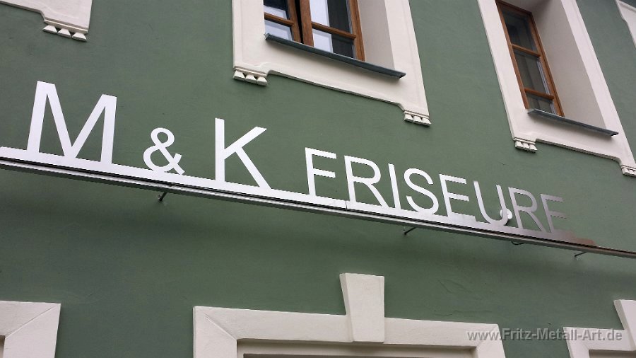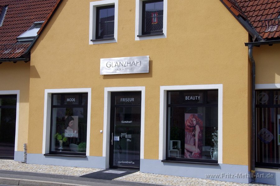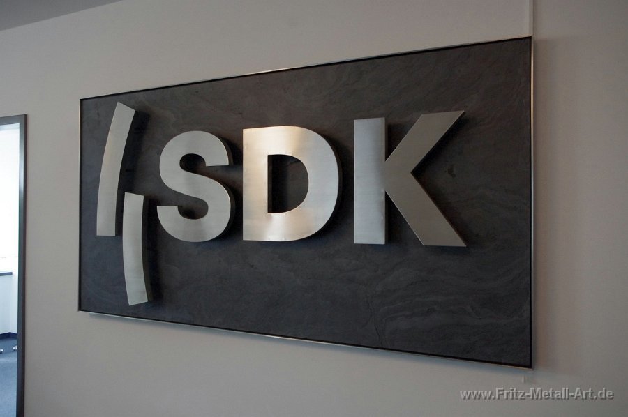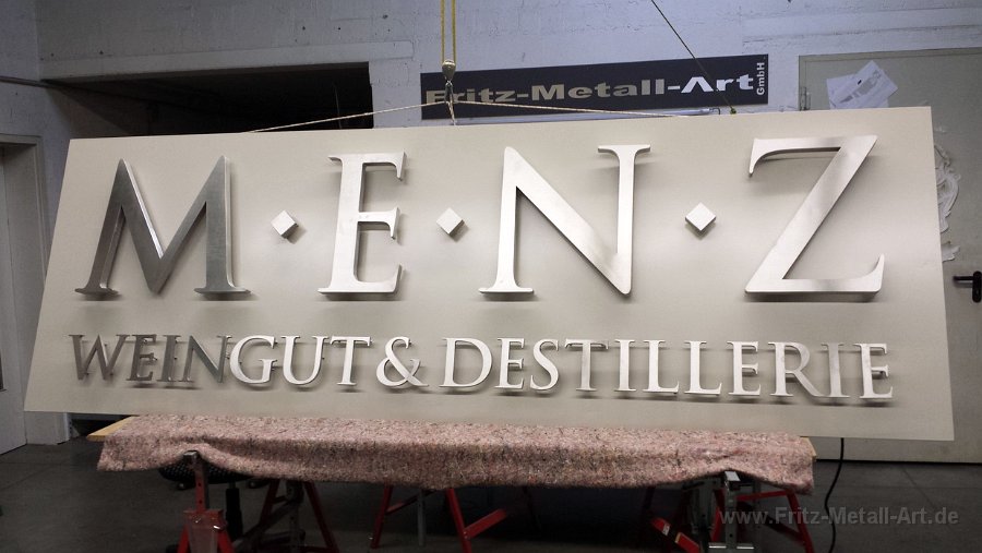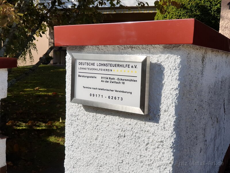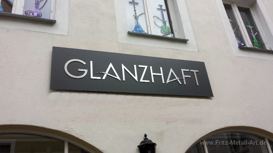 255 Grundtafel in Wunschfarbe mit auf Abstand montierten Edelstahl Schrift.
