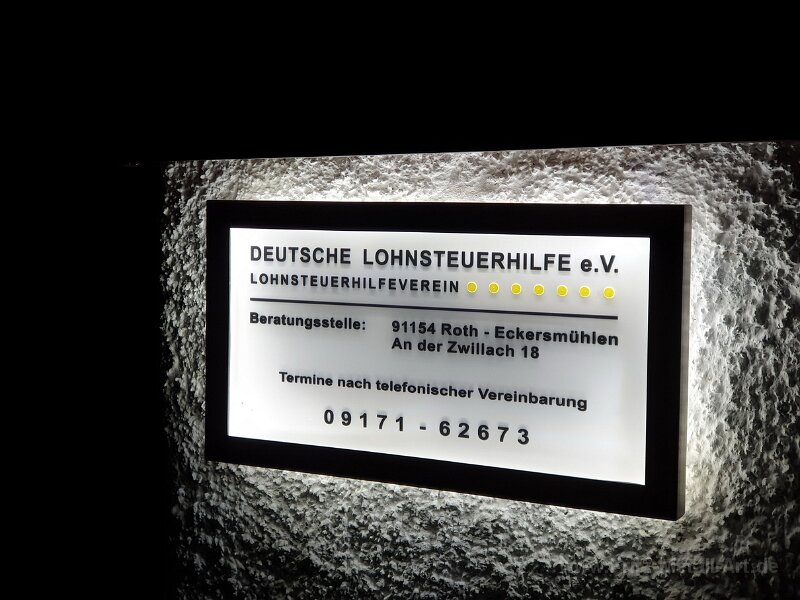 16 Das LED Licht strahlt von den Kanten her in die Acryalschilder, dadurch lommt die 3-D Schrift noch besser zur Geltung.