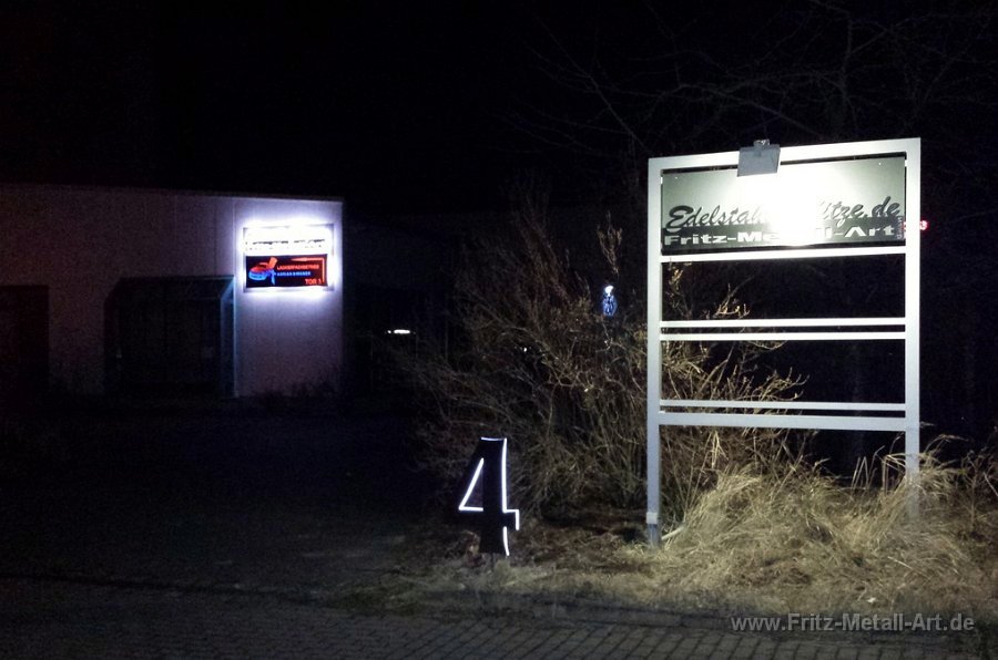 34 Edelstahl Stele mit ausgeschnittenen und hinterleuchtet mit moderner led Technik
