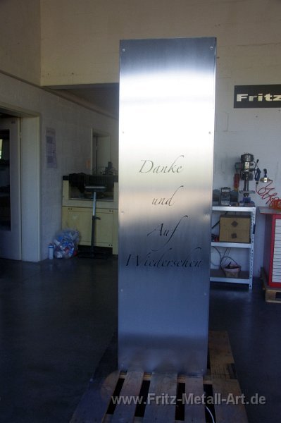 226 Tafel Edelstahl gebürstet mit ausgeschnittenen Schrift, mit LED`s hinterleuchtet.