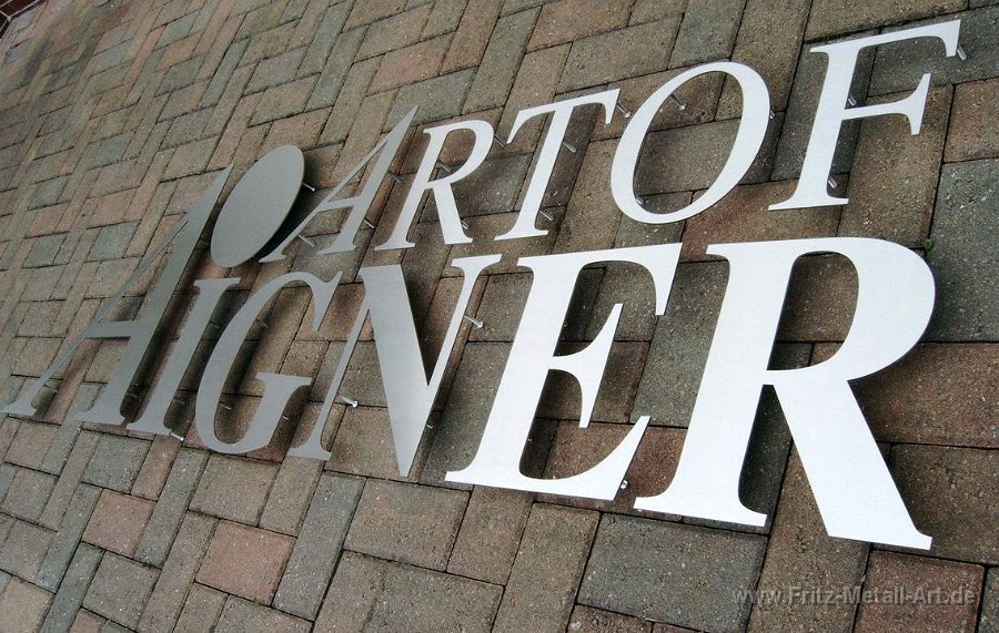 280 Einzelbuchstaben aus Edelstahl mit Abstandsbolzen.