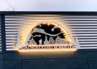 30 Fasaden Logo aus Edelstahl, Pulverbeschichtet und mit durchleuchteten Acrylglas