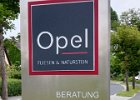 243 Stele aus Edelstahl, 1,8 x 0,5 Meter, mit vier Acrylfenster. Hinterleuchtet. Die Acrylplatten sind von der Rückseite her graviert, damit das Licht durch scheint, auf dem Acryl sind die Logos mit Edelstahl erhaben aufgebracht. Hier mit ausgeschalteter Beleuchtung.