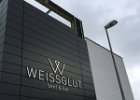 31 Fasaden Logo aus Edelstahl, Pulverbeschichtet und mit durchleuchteten Acrylglas