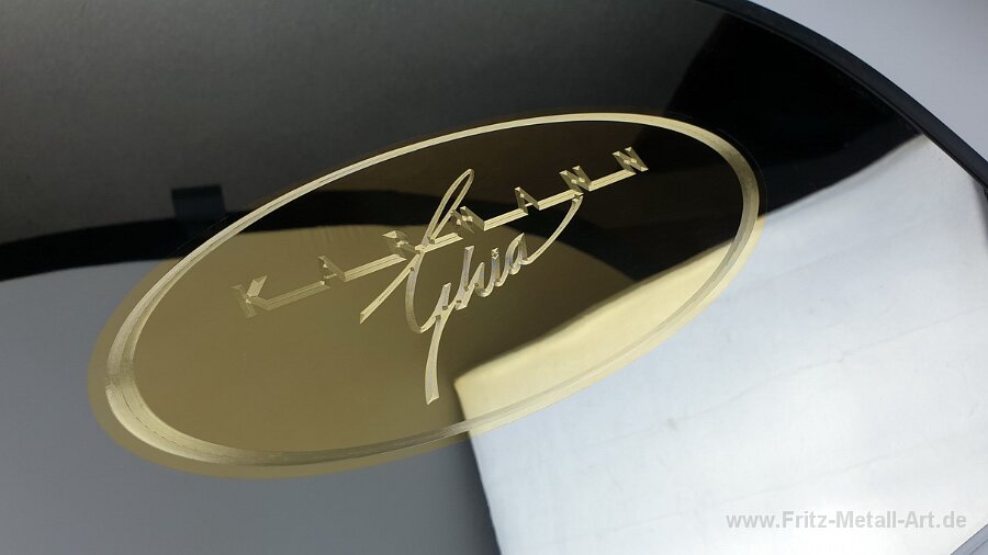 37 Fräsgravur mit Farbfüllung in Edelstahl Hochglanz Poliert.