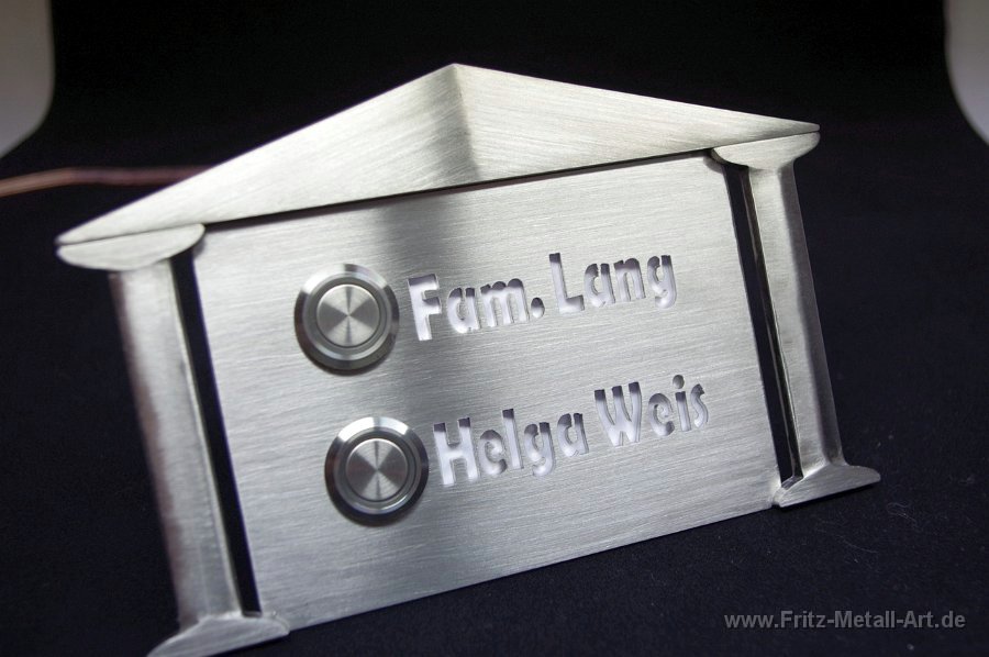 51 Klingelplatte in individueller Form. Die Namen mit Fräsgravur. Edelstahl Taster.