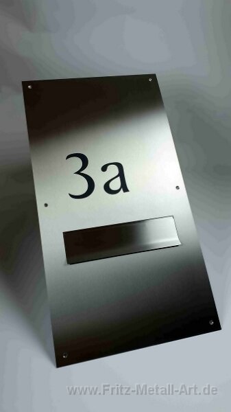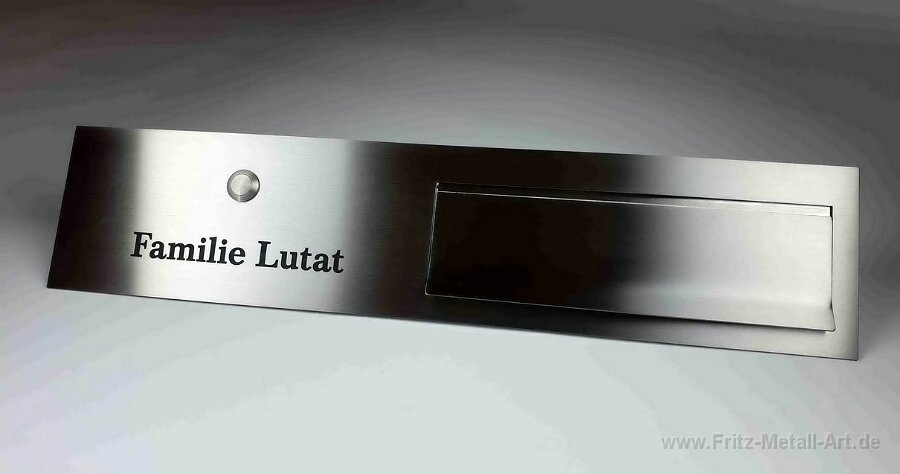 23 Briefkastenklappe nach Kundenwunsch. Hier hat die obere Fläche die öffnung einer alten Klingelanlage abgedeckt. Die optimale Fläche für eine Hausnummer die mit matt schwarzer Lasergravur aufgebracht wurde.