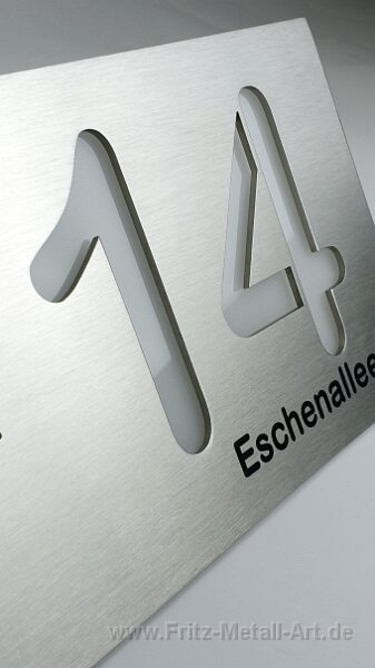 3 Hausnummer ausgeschnitten und mit Acrylglas hinterlegt.