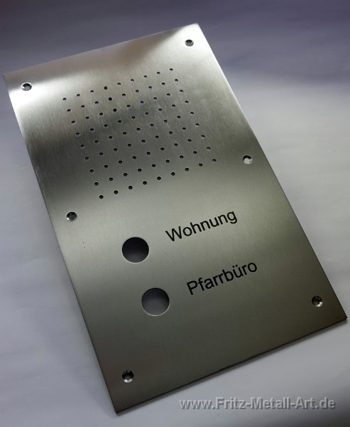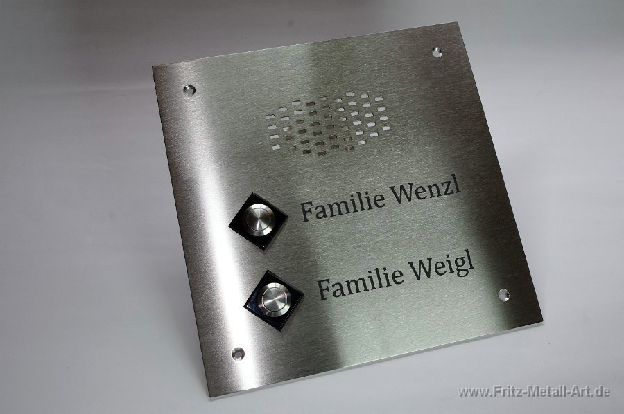 46 Klingelplatte mit Fräsgravur und Edelstahl Taster.